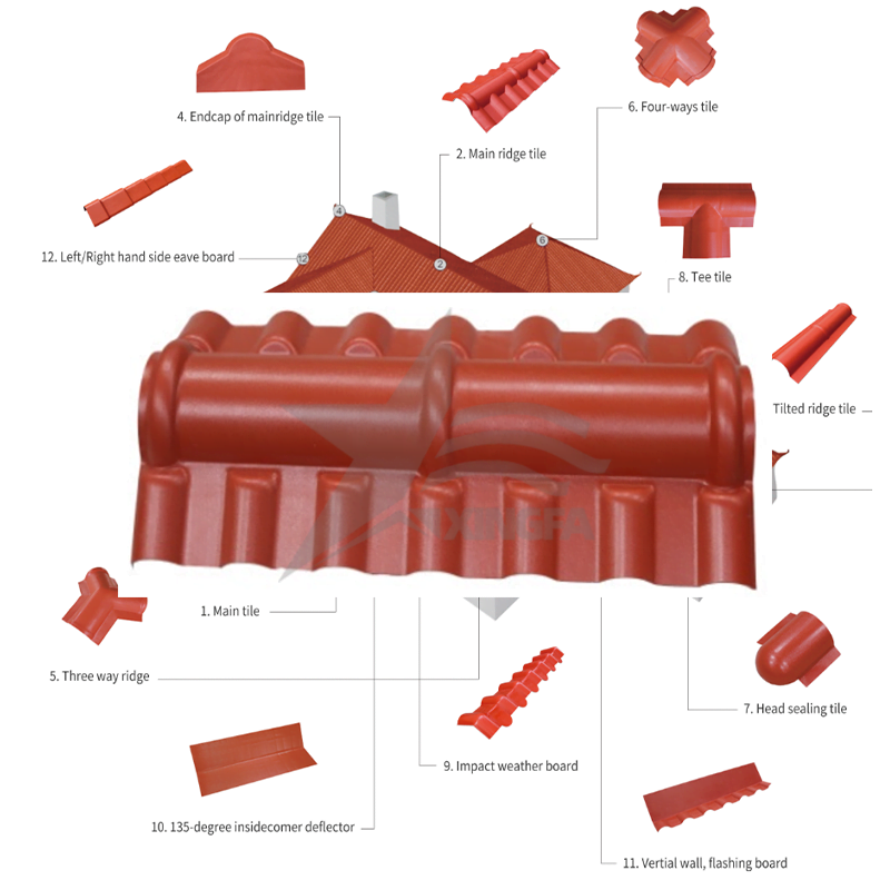 Наклонная коньковая черепица для кровельного листа ASA Spanish 1050