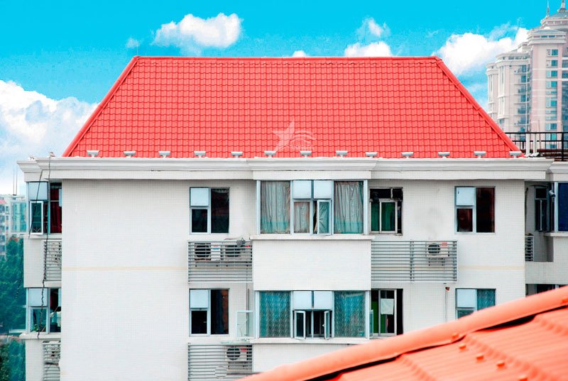 A piece of resin tile has a large area, so there are few joints for waterproofing; and the weight of synthetic resin tile is very light, the installation process is very simple, and it reduces the load-bearing of the house, which is shorter than the color steel tile in construction time.