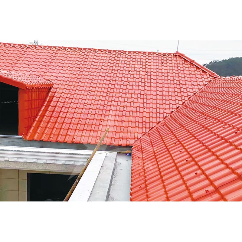 Compared with glazed tile, synthetic resin tile is becoming more and more popular in the new rural construction. Synthetic resin tiles are usually made of ASA (ultra-high weather-resistant engineering resin) material. It has the advantages of durable color, light quality, high tenacity, thermal insulation, corrosion prevention and high weather resistance. They are suitable for all kinds of permanent building roof decoration, such as “flat slope” project. The color of the synthetic resin tile can remain bright for a long time and will not fade, so it can increase the beauty of the house. At the same time, due to its lightweight characteristics, the installation of synthetic resin tiles will not bring too much load to the housing structure, reducing the cost and risk of the building. In addition, the synthetic resin tile has a good weather resistance and resistance to heat expansion and cold contraction ability, to adapt to various climate conditions, not easy to crack. It can also well prevent the water vapor penetration, improve the waterproof performance of the roof, and protect the healthy environment of the house.