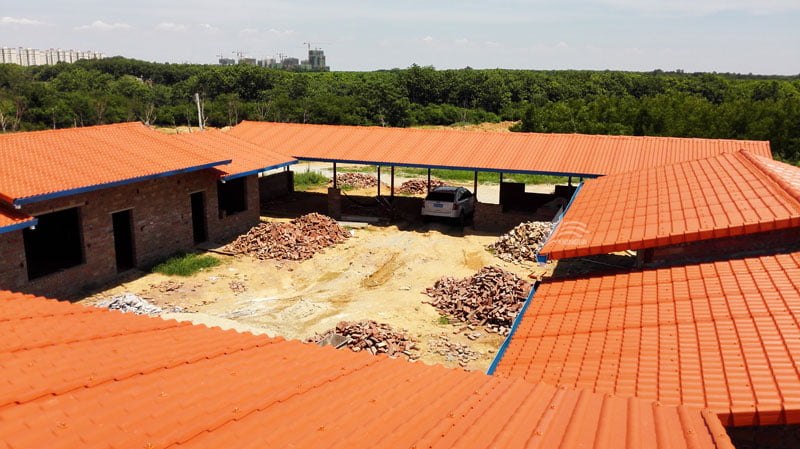 2. Anti-aging: The roof area of the factory is large, often affected by natural conditions and vibration of sun, rain, cold and hot weather, the roof tiles of the factory are easy to age. Once the roof tiles are aged, users need to renovate, which is a big cost. Therefore, the selected ASA/PVC tiles must be able to resist aging and have a long life.