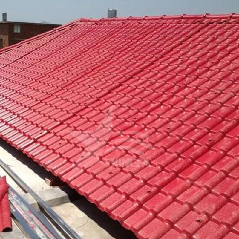 Synthetic resin tile not only has excellent performance in quality, but also shows a variety of color. Its 3.0mm thickness is lighter than the traditional pottery tile, and various colors, easy to transport and install, not only saves the cost, but also ensures the efficiency and safety of construction.