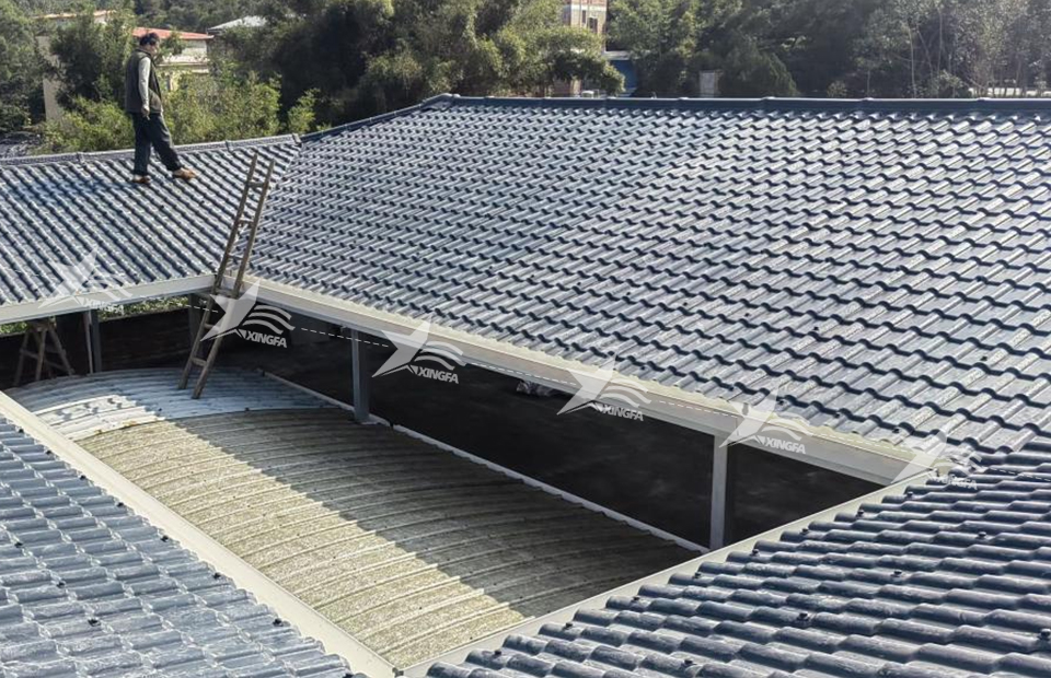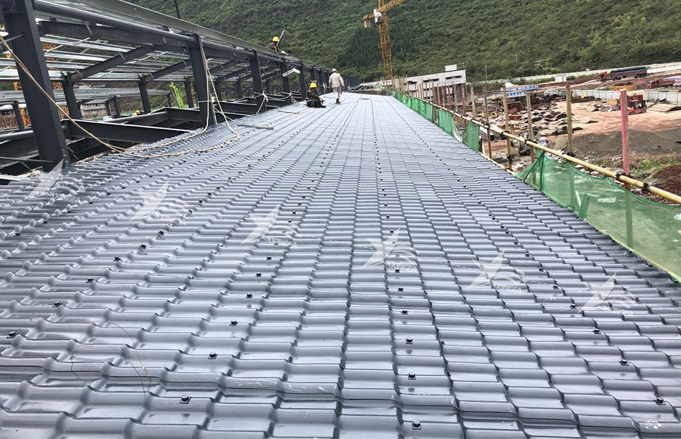 Synthetic resin tiles are made of high-quality PVC material and feature extremely strong corrosion resistance and UV resistance. The service life can reach over 30 years, far exceeding that of color steel tiles. Synthetic resin tiles are not only waterproof and fireproof, but also have excellent heat insulation and sound insulation effects. More importantly, synthetic resin tiles are easy to install, have high construction efficiency, and low installation costs.